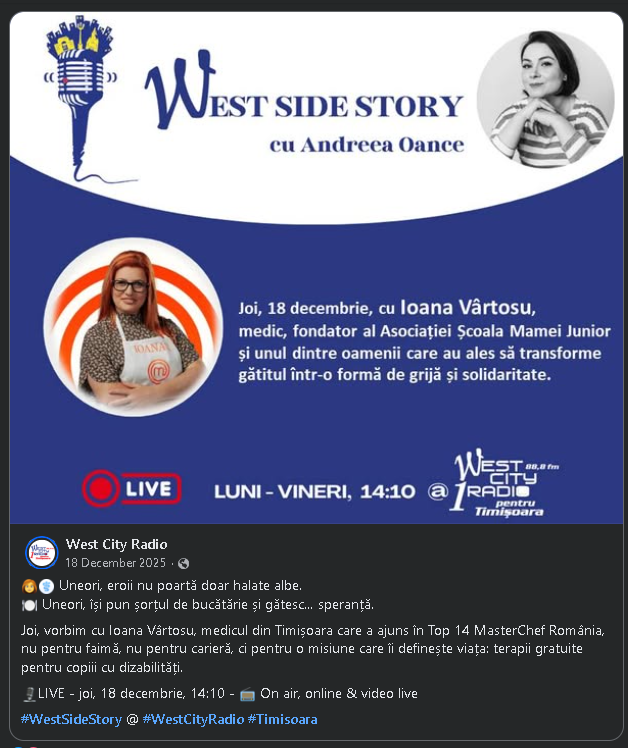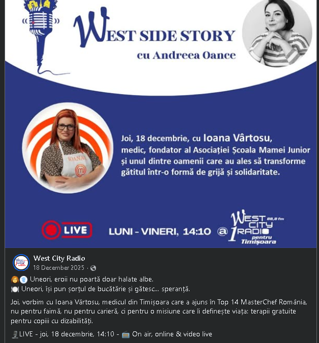 LIVE LA WEST CITY RADIO de daniel | dec. 18, 2025 | Fără categorie | 0 comentarii Ora 14.10 ne auzim pe West City si vedem live pe pagina lor de facebook Introdu Comentariu Anulează răspunsulAdresa ta de email nu va fi publicată. Câmpurile obligatorii sunt marcate cu *Comentariu * Nume * Email * Site web Salvează-mi numele, emailul și site-ul web în acest navigator pentru data viitoare când o să comentez. Δ Acest site folosește Akismet pentru a reduce spamul. Află cum sunt procesate datele comentariilor tale.